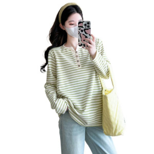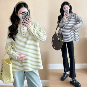 孕妇秋季新款长袖上衣韩版宽松休闲时尚潮妈V领条纹显瘦孕妇T恤