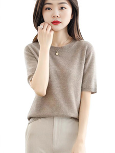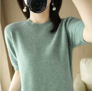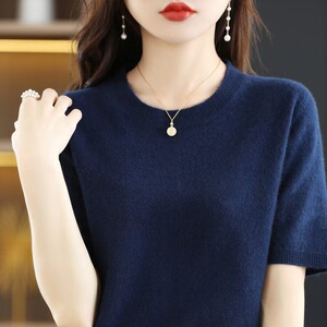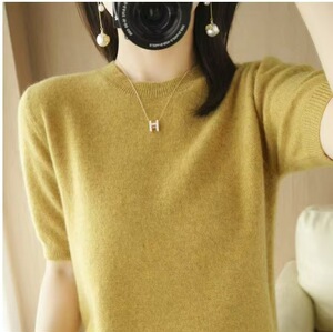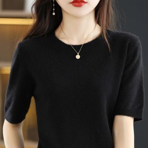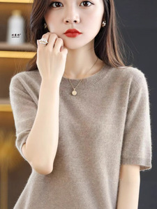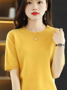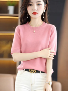 春夏季女装新款宽松圆领大码短款套头温柔风短袖上衣T桖针织衫