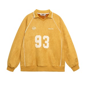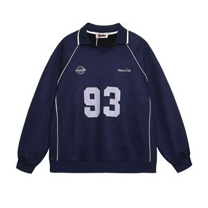 美式复古字母印花长袖卫衣男女秋季polo领宽松休闲情侣套头上衣潮
