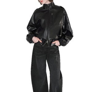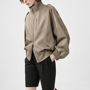真皮皮衣HN5226秋冬绵羊皮美式复古立领落肩双向拉链机车夹克外套