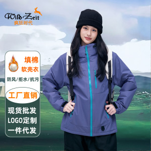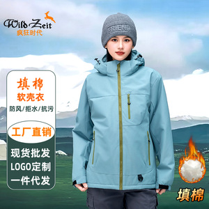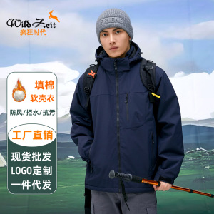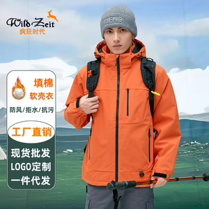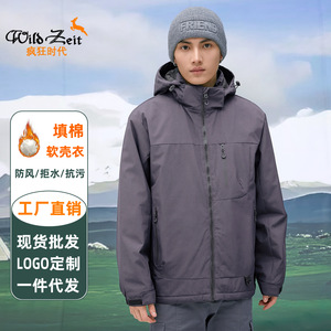 软壳棉衣男女棉服加厚外套保暖防风大码休闲连帽夹克工作队服定制
