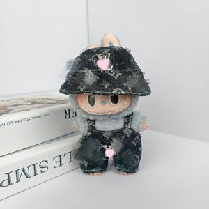 一二三代搪胶LABUBU公仔衣服挂件拉布布玩偶着替黑色大牌牛仔套装