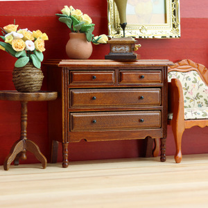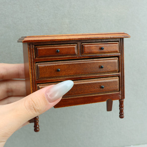 1:12娃娃屋dollhouse迷你小家居实木柜微缩客厅场景栗色抽屉柜子