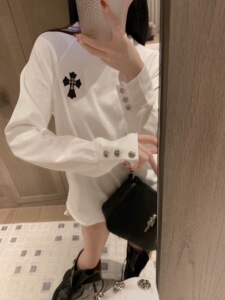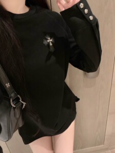 【深圳南油】新款十字架刺绣长袖T恤女修身气质通勤上衣秋装