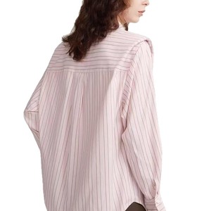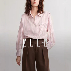 ELLE粉色感正肩条纹气质衬衫女2025春秋季新款上衣轻熟法式小众