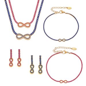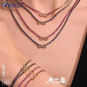 谜丽无限循环满钻数字8锆石项链手链耳环钛钢欧美风个性百搭套装