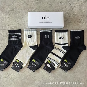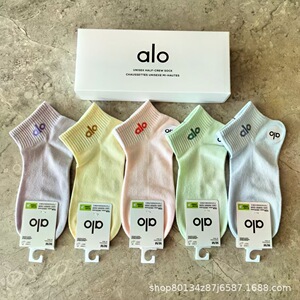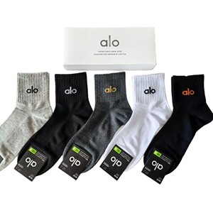新品alo男女5双盒装运动短袜四季吸汗纯色网眼棉袜时尚男女情侣袜