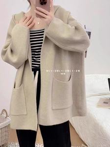 连帽毛衣外套女2025秋冬新款跨境高级感中长款宽松慵懒风针织开衫