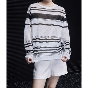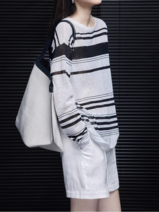 moment黑白条纹亚麻针织t恤女2025宽松慵懒风松弛感独特超好看