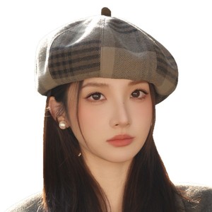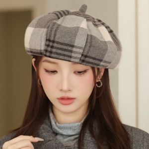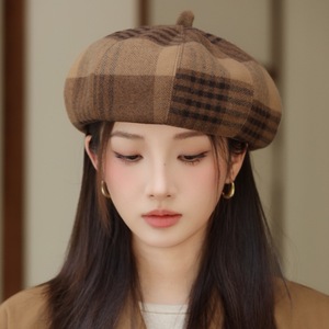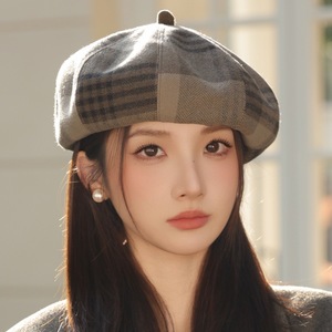 秋冬新款韩版时尚优雅格子贝雷帽百搭洋气画家帽英伦复古蓓蕾帽