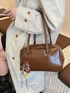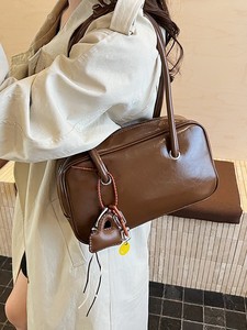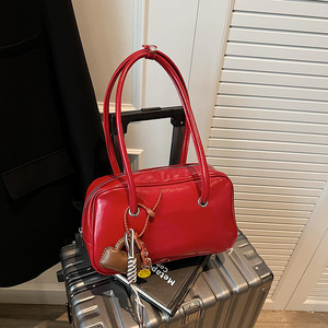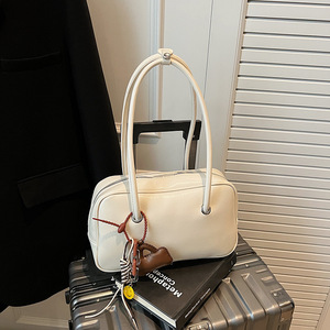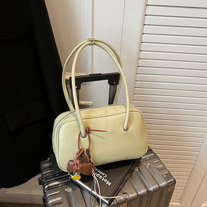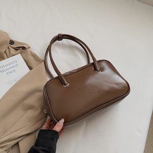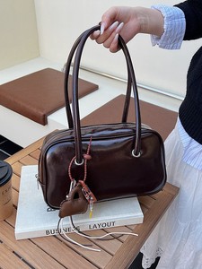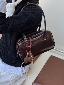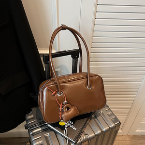 韩国纯色保龄球包包女2025秋冬新款潮复古公文包大容量单肩腋下包