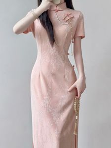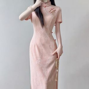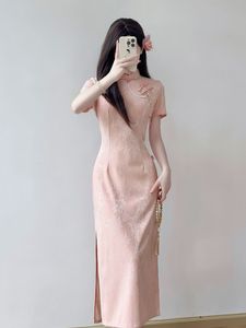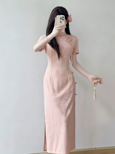 新中式旗袍2025新款气质高端年轻款粉色少女改良高贵连衣裙日常