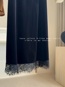 蕾丝花边拼接丝绒半身裙女2025年秋新款松紧腰显瘦气质中长A字裙
