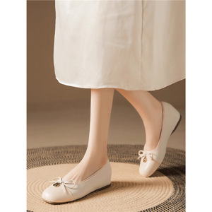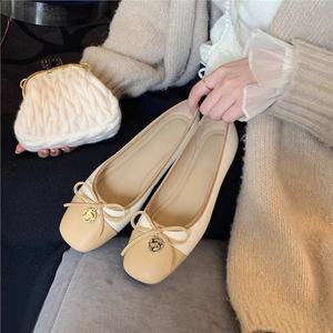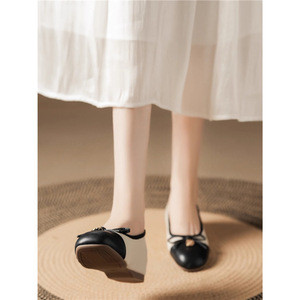 小个子内增高小香风单鞋女蝴蝶结芭蕾舞平底鞋一脚蹬豆豆鞋子
