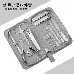 便携不锈钢美甲指甲钳美容套指甲剪12件套装修脚护理修甲工具礼品