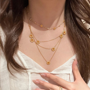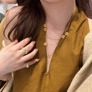 小红书爆款中古风金色小雏菊多层叠戴项链2025新款个性锁骨链饰品