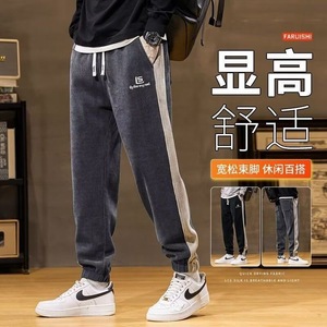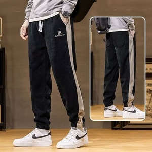 男士秋冬款灯芯绒加绒加厚保暖长裤男简约宽松运动休闲束脚卫裤