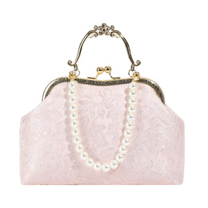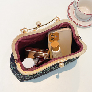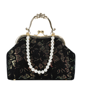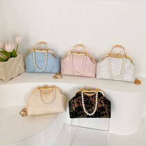 新中式国风刺绣包包女2025新款珍珠链条斜挎包超火手提口金包