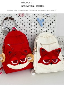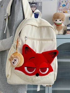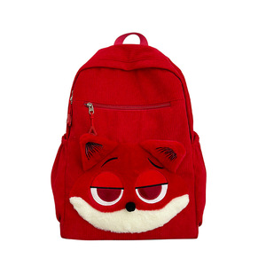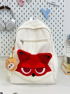 新款灯芯绒上课通勤书包小狐狸休闲可爱出游背包小学生初中生批发