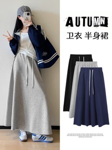 休闲宽松直筒半身裙女春秋季新款韩系简约高腰显瘦灰色大摆中长裙