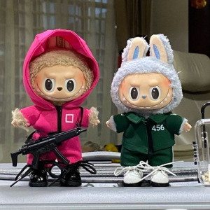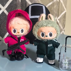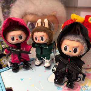 仅衣服拉布布labubu娃衣 二三代17cm挂件毛绒玩具衣服套装仿真枪