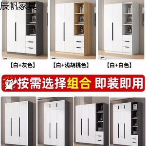 衣柜现代简约家用卧室小户型平开门收纳储物柜简易出租房用挂衣橱