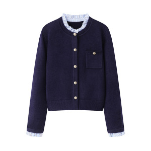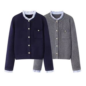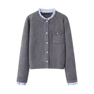 秋冬新款气质百搭设计感法式小香风针织开衫女百褶花边领毛衣外套