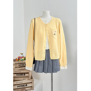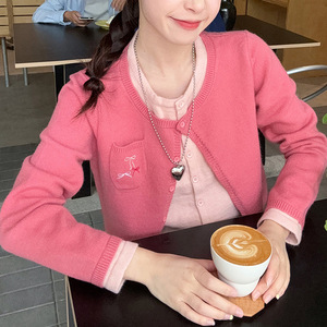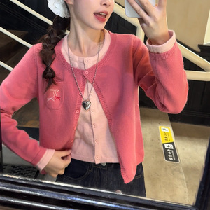 韩系学院风多巴胺假两件针织开衫毛衣女秋冬长袖打底短款外套上衣