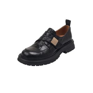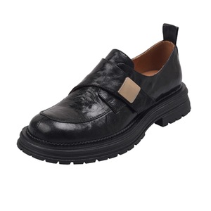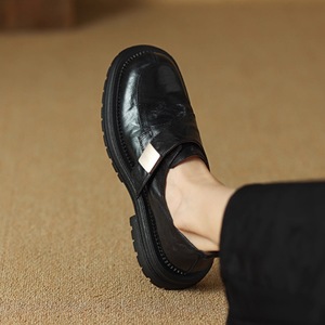 真皮版~法式复古圆头厚底小皮鞋女2025秋新款金属扣浅口黑色单鞋