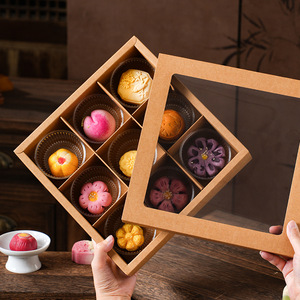 中式传统糕点月饼包装盒礼盒红色九宫格蛋黄酥牛皮纸四六宫格透明