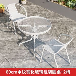 60cm水纹钢化玻璃折叠圆桌+2椅