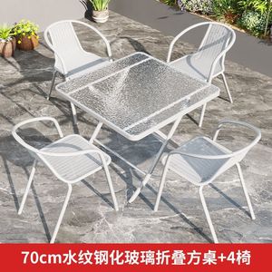 户外桌椅庭院白色室外休闲露天防水防晒阳台折叠一桌四椅喝茶茶几