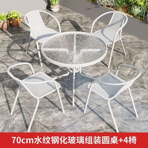 70cm水纹钢化玻璃折叠圆桌+4椅
