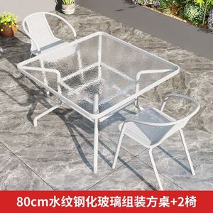 80cm水纹钢化玻璃折叠圆桌+2椅