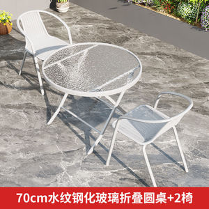 70cm水纹钢化玻璃折叠圆桌+2椅