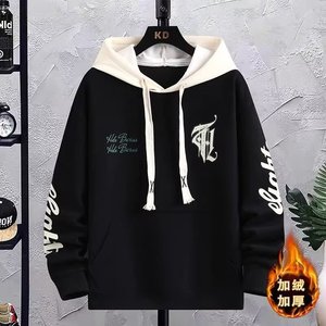 秋冬男士简约字母印花连帽卫衣男青少年百搭加绒宽松舒适套头衫