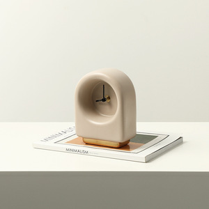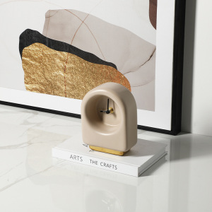 北欧轻奢创意极简金底陶瓷桌钟样板房客厅卧室书柜设计师家居饰品