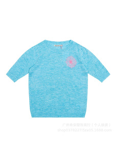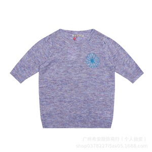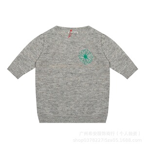 【高品质】韩国mardi针织衫刺绣短袖夏日色莫代尔薄款针织上衣女