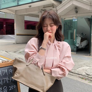 柠檬绿茶领结衬衫女2025秋季新款气质立领长袖衬衣设计感小众上衣