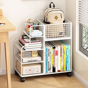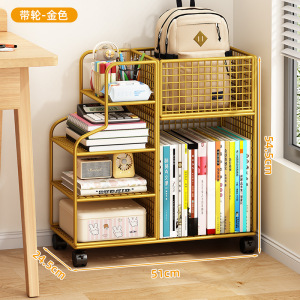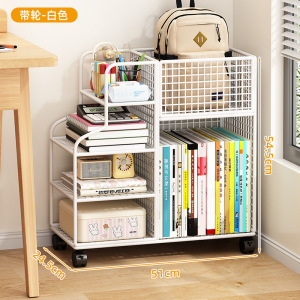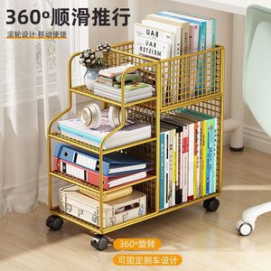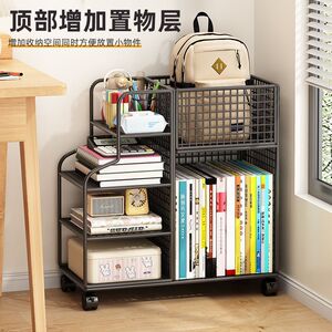 可移动书架桌下带轮置物架书桌旁收纳绘本架简易铁艺书本收纳架子