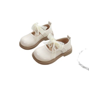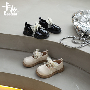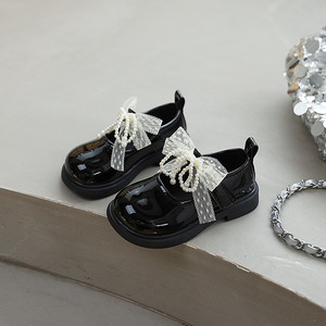 2025秋季新款洋气甜美薄纱蝴蝶结装饰女童英伦风亮皮方口学院鞋潮