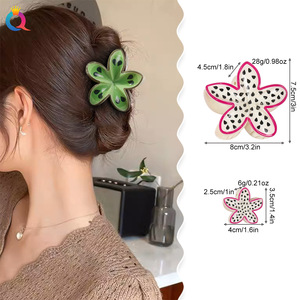 奇阅跨境时尚水果UV印抓夹创意鸡蛋花抓夹女紫荆花发饰鲨鱼夹批发