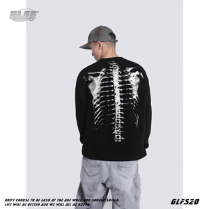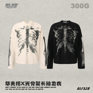 GLFS 秋冬新品美式骨架X光炫酷印花长袖圆领男式卫衣 男女同款长T