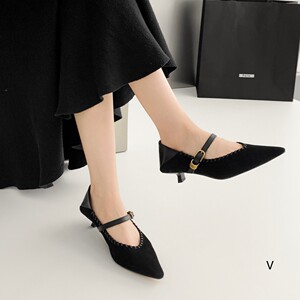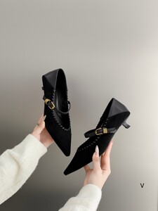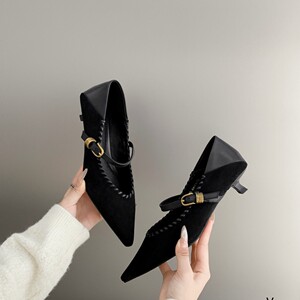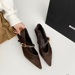 欧洲站女鞋25秋冬踩跟一字带羊猄皮拼胎牛皮尖头浅口舒适平底单鞋