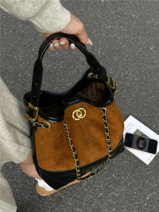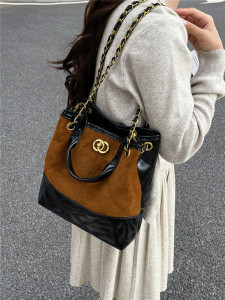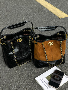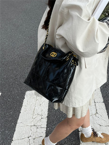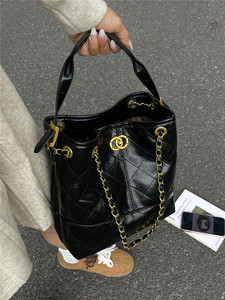 复古百搭大容量手提单肩包2025新款外贸跨境菱格链条锁扣水桶包女