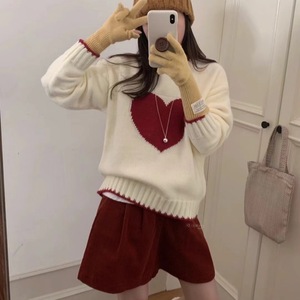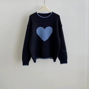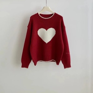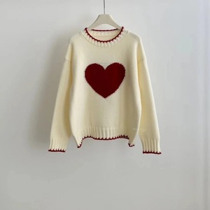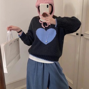 爱心撞色套头毛衣女2025早秋新款慵懒风圆领软糯宽松外穿针织上衣