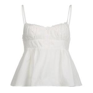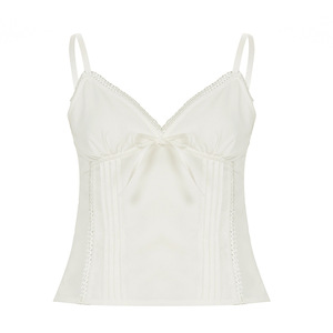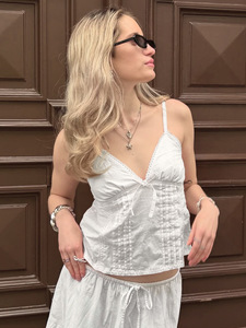 BM风减龄少女感V领花边吊带夏日轻薄款舒适休闲短款纯色背心上衣