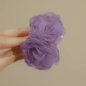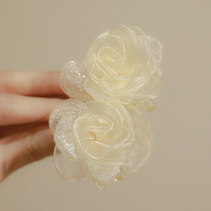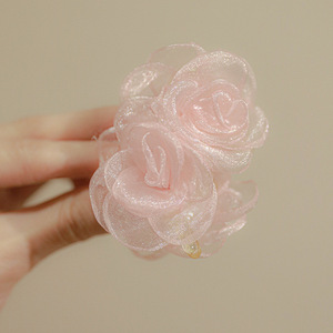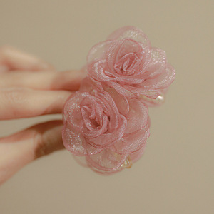 超仙网纱花朵刘海小抓夹女2025新款高级感山茶花夹子头饰鲨鱼发夹