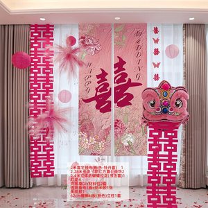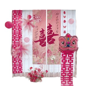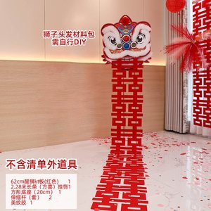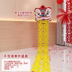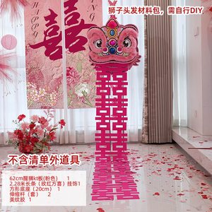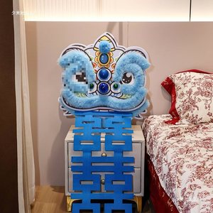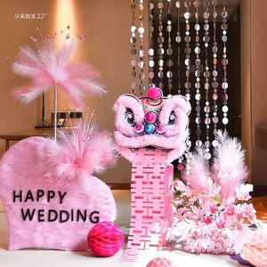 婚房布置2025新款婚礼单狮子头拍照传统订婚晨袍装饰道具醒狮摆件