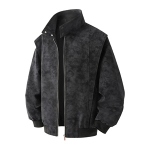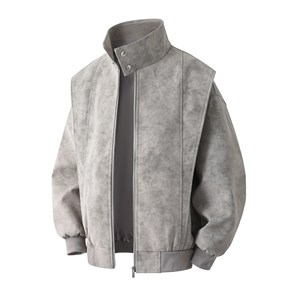 跨境外贸速卖通男夹克美式男女款复古棒球美拉德水洗皮衣夹克批发